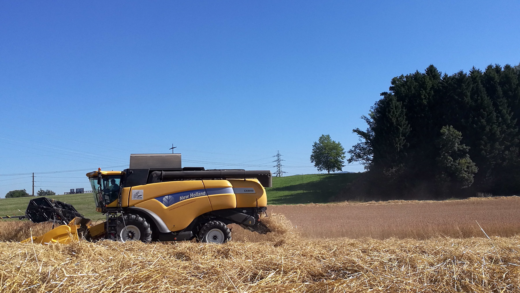 Ein stattlicher Bauernhof, umgeben von blühenden Feldern, grünen Wiesen und einer sanften Hügellandschaft. Die Sonne brennt, der Himmel ist stahlblau. In der Ferne wirbelt Staub durch die Luft und das regelmässige Rattern lässt erahnen, was dort gerade passiert. Es ist Hochsaison – Hochsaison der Getreideernte. Langsam und behaglich zieht der Mähdrescher Meter für Meter seine Bahnen durch das Dinkelfeld.