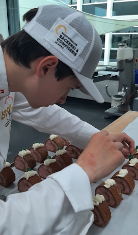 Bevor die Rangverkündigung anstand, mussten die Teams noch eine letzte Herausforderung meistern: das Speedbaking, das ausserhalb des regulären Wettbewerbs bewertet wurde. In drei Runden à drei Minuten galt es, überraschende Aufgaben zu lösen. Die erste Aufgabe: Möglichst viele Brezeli formen. Danach galt es, Mandelmasskonfekt gemäss Schablone aufzudressieren und mit Nüssen zu dekorieren. Bei der letzten Aufgabe sollten sie mit Spritzkuvertüre den Schriftzug «Let’s Celebrate» schreiben. Was spielerisch klingt, hat einen klaren fachlichen Hintergrund: Hier zählen Handgeschick, Tempo und Präzision. Für das Publikum ein grosser Spass und die Gelegenheit, ihre Teams nochmal lautstark anzufeuern. Tatsächlich holen Jona und Lena dabei ihre letzten Energiereserven heraus und gewinnen diese Challenge souverän. Ein kleiner, aber verdienter Etappensieg.